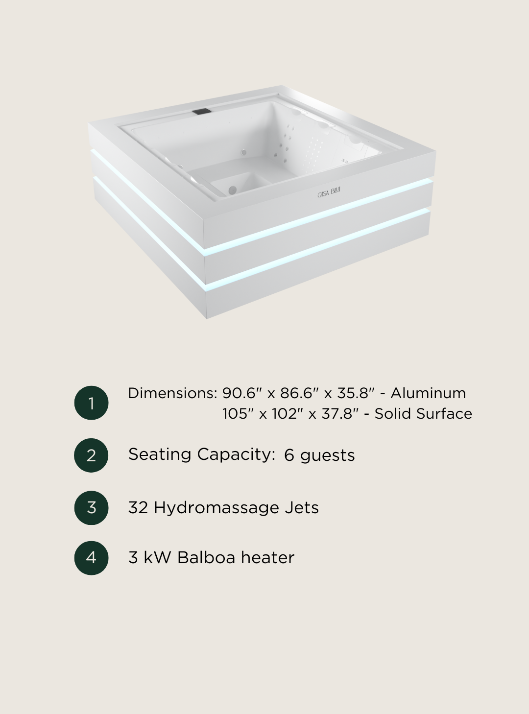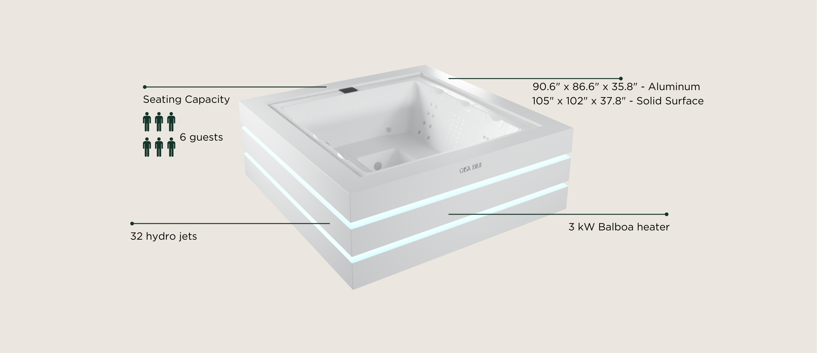 Astra redefines contemporary spa design with a crisp, modern silhouette, clean straight lines, and premium cabinet color options that elevate any outdoor setting. Built for up to six guests, its spacious interior and exceptional construction deliver lasting comfort and reliability—with an included spa cover.