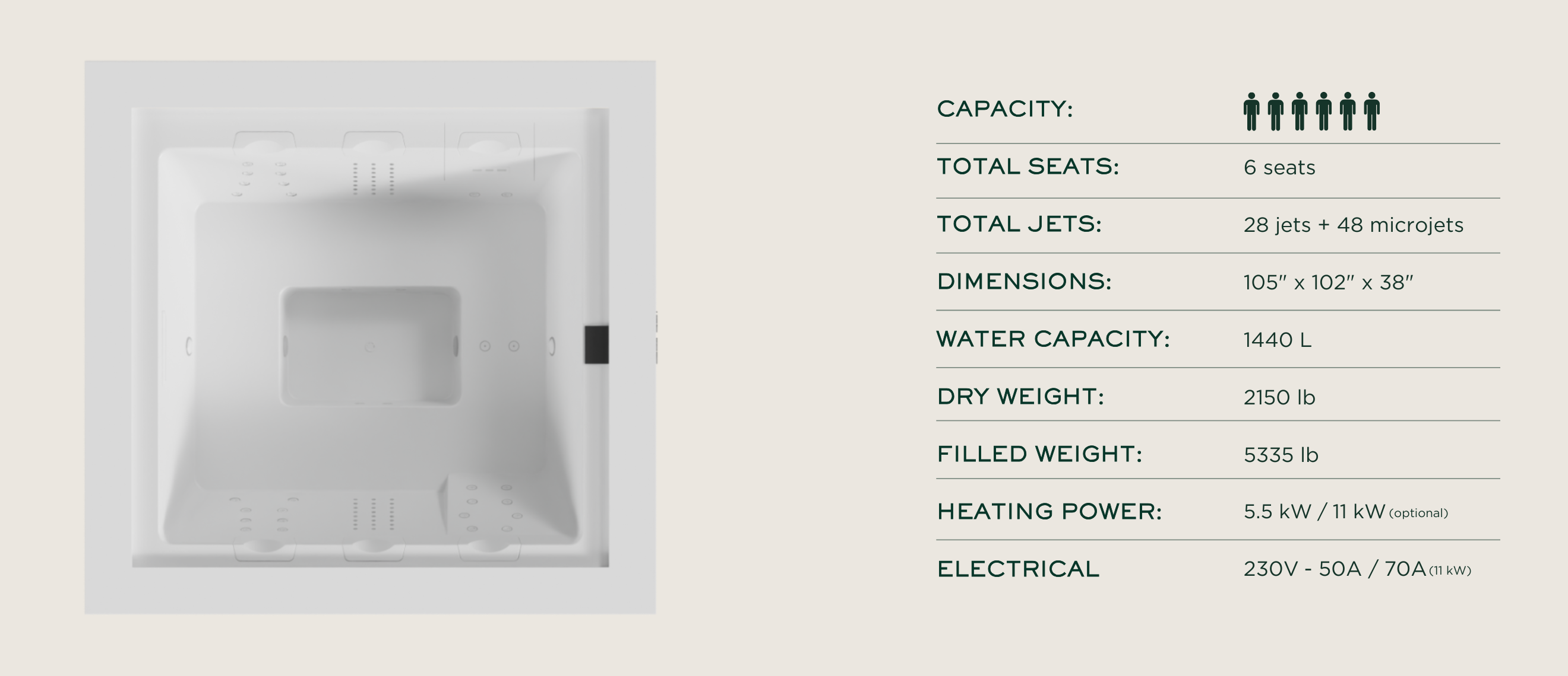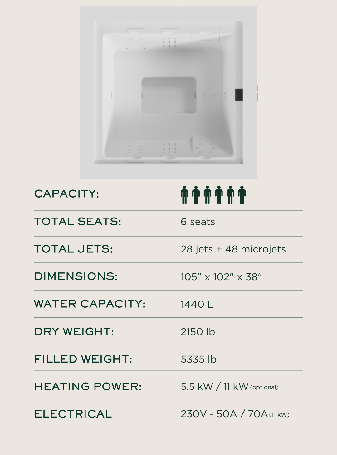 Astra redefines contemporary spa design with a crisp, modern silhouette, clean straight lines, and premium cabinet color options that elevate any outdoor setting. Built for up to six guests, its spacious interior and exceptional construction deliver lasting comfort and reliability—with an included spa cover.