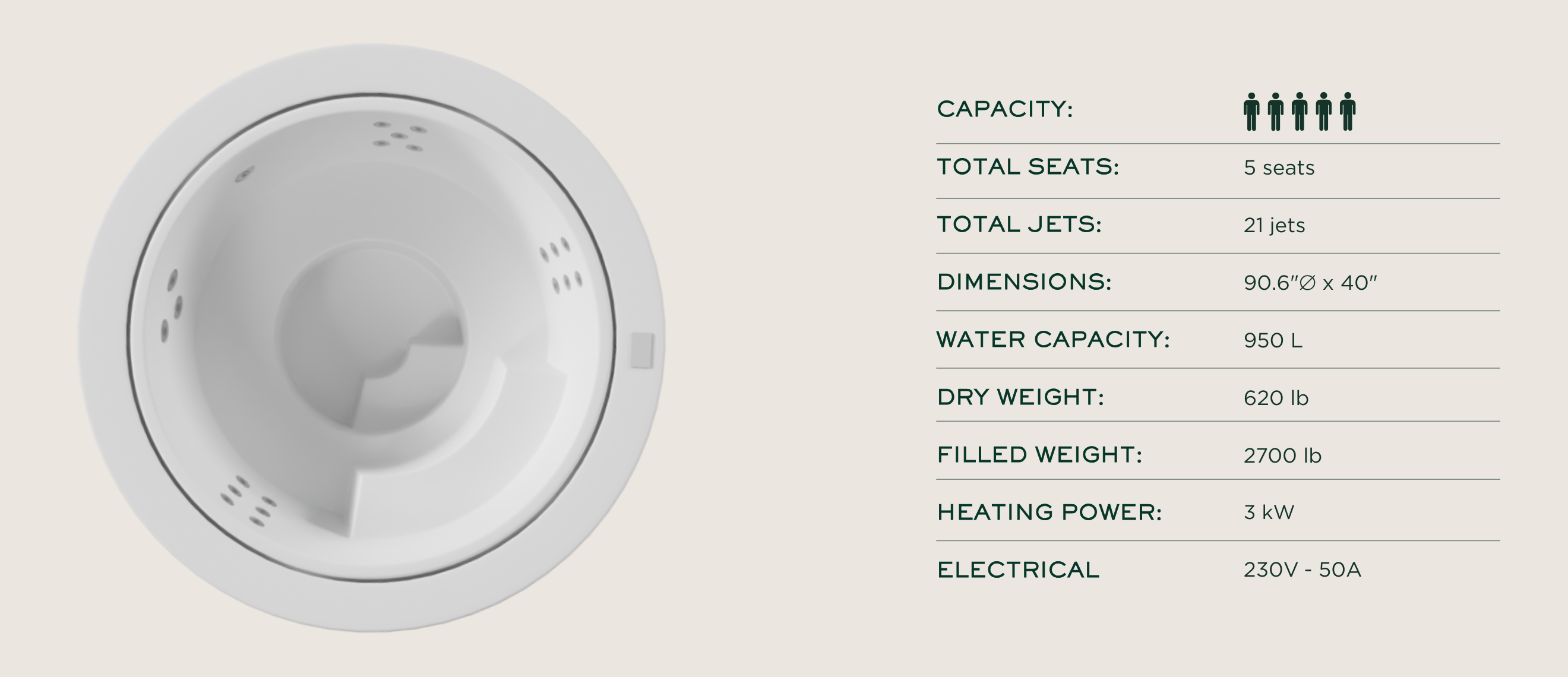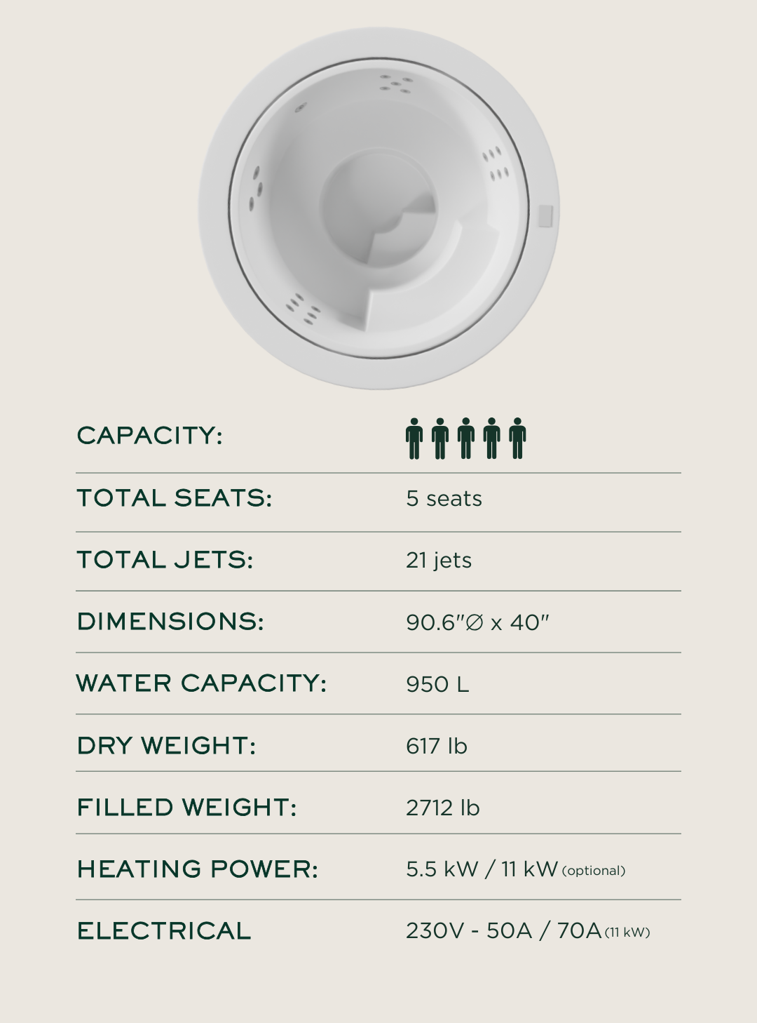 Engineered for professional installation, it features an advanced ozonator sanitation system and built-in electrical safety protections for dependable everyday use. These integrated maintenance and reliability features help ensure effortless operation, consistently clean water, and long-term performance in any private wellness space.