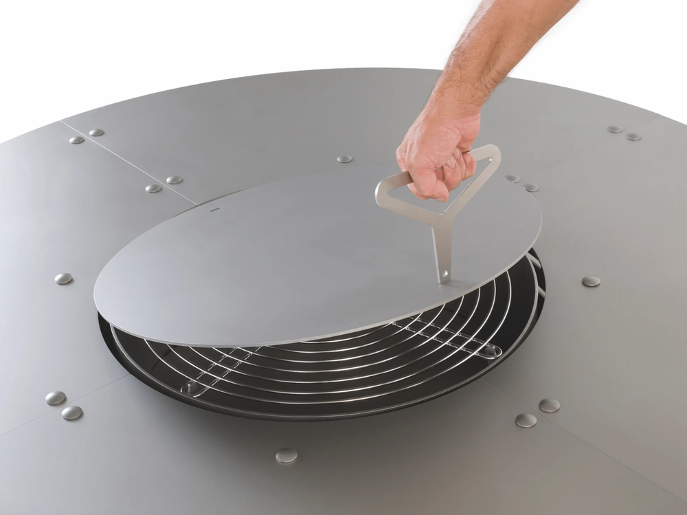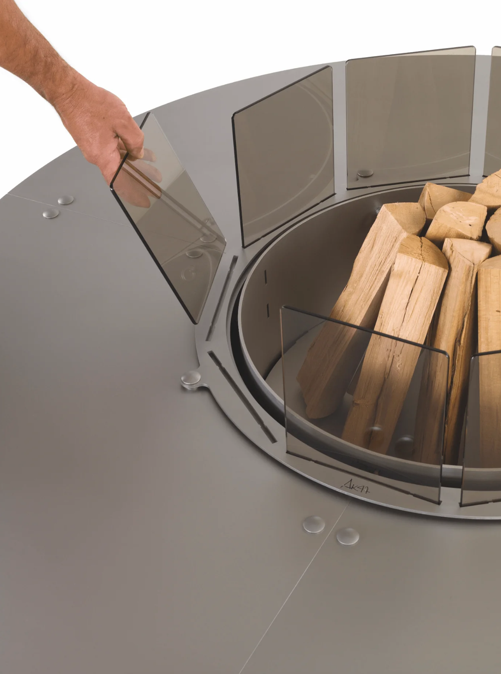 With the dedicated stainless steel grill kit (sold separately), the fire pit can also be used as a barbecue.