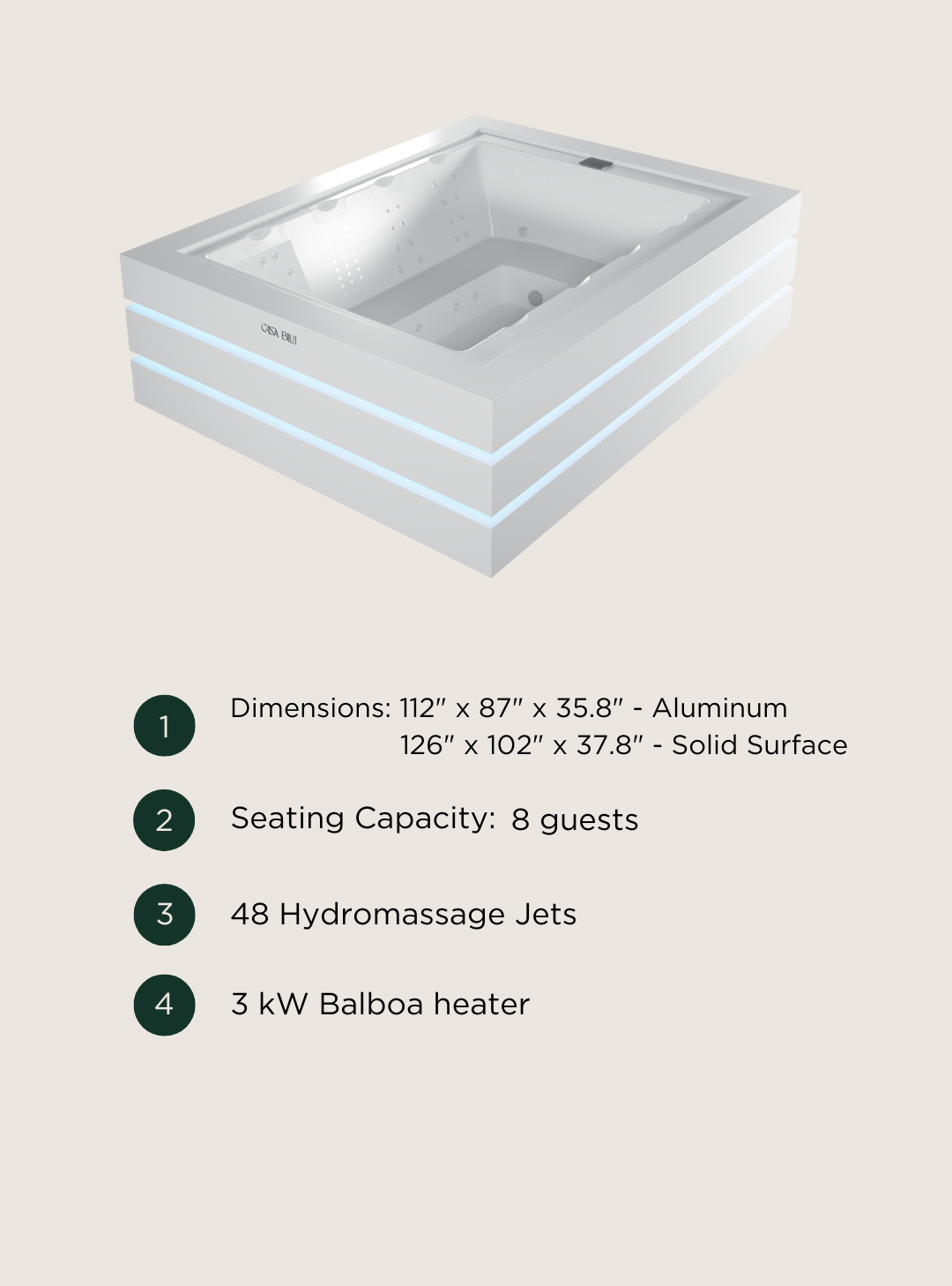 Engineered for professional-grade hydrotherapy, Opus combines the relax impact system’s whisper-fine microbubbles with a dynamic, draining rotational massage to ease tension from neck to toes. Flat, white, low-profile jets sit flush with the shell for a refined look and a smooth, snag-free surface, while the advanced jet layout balances pinpoint muscle relief with full-body effervescence. Whether you’re hosting friends or unwinding solo, Opus turns every soak into a deeply restorative experience.
