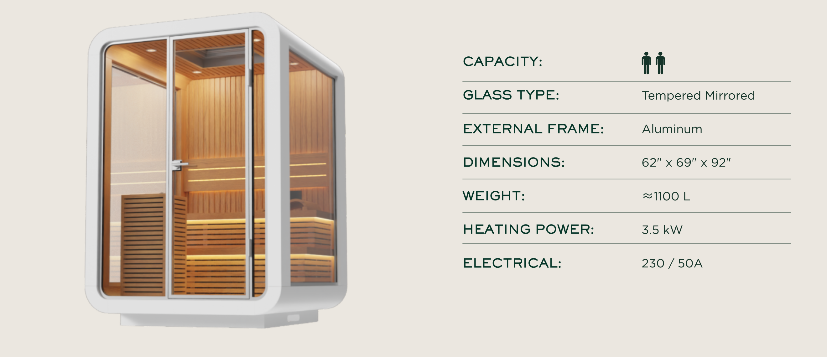 Designed for smaller spaces without compromising on style, Vista features elegant tiered seating so you can choose your perfect spot and let the enveloping heat from the enclosed heater melt away tension. Ideal for apartments, balconies, or cozy spa corners, Vista delivers a high-end spa experience in a footprint made for modern living.